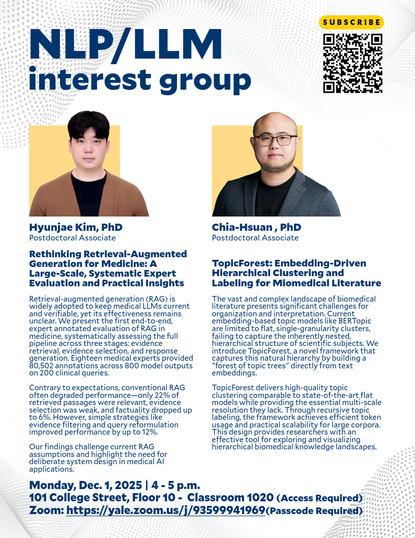 1. Rethinking Retrieval-Augmented Generation for Medicine: A Large-Scale, Systematic Expert Evaluation and Practical Insights by Hyunjae Kim, PhD