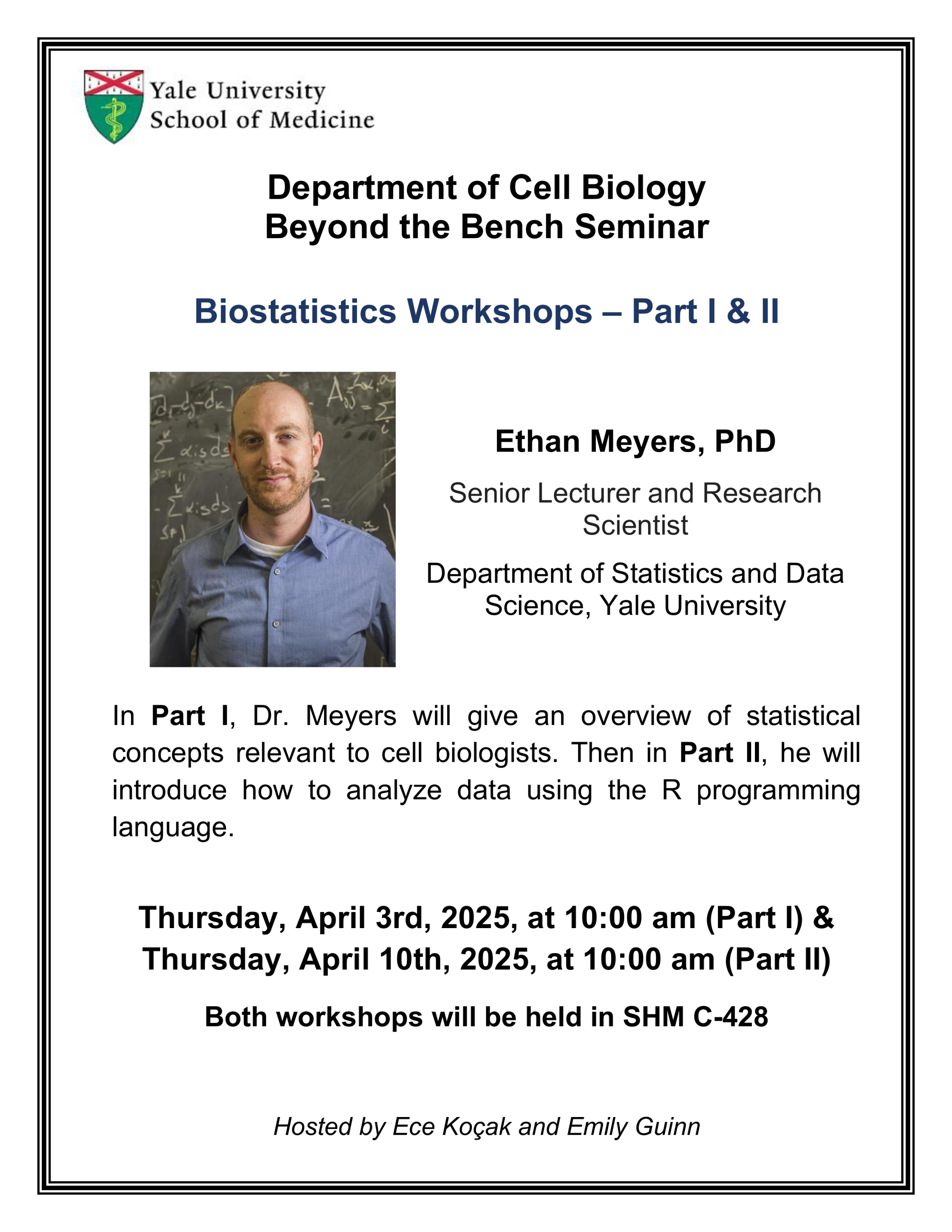 Department of Cell Biology Beyond the Bench Seminar; Biostatistics Workshop with Ethan Myers, PhD
