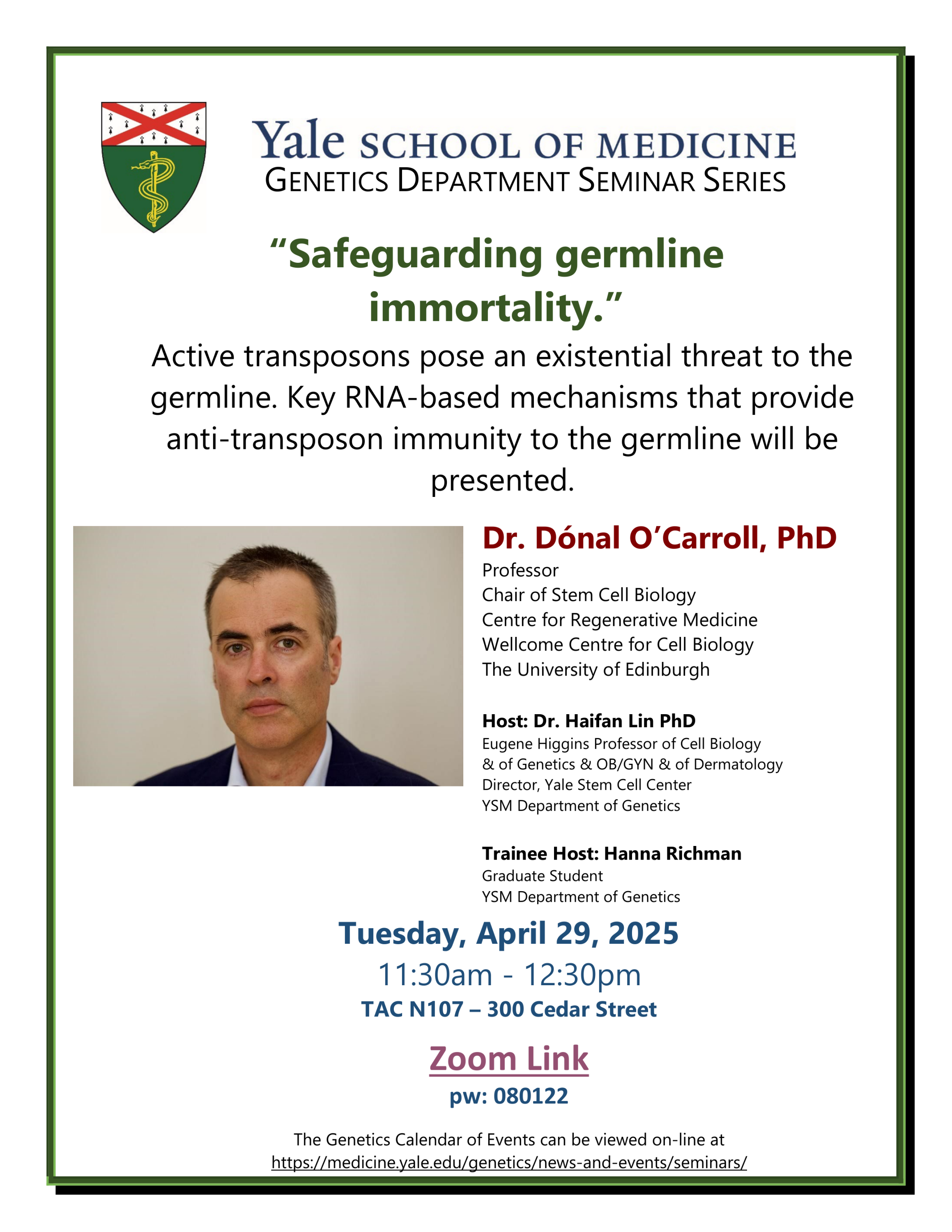 Genetics Department Seminar Series: "Safeguarding Germline Immortality"