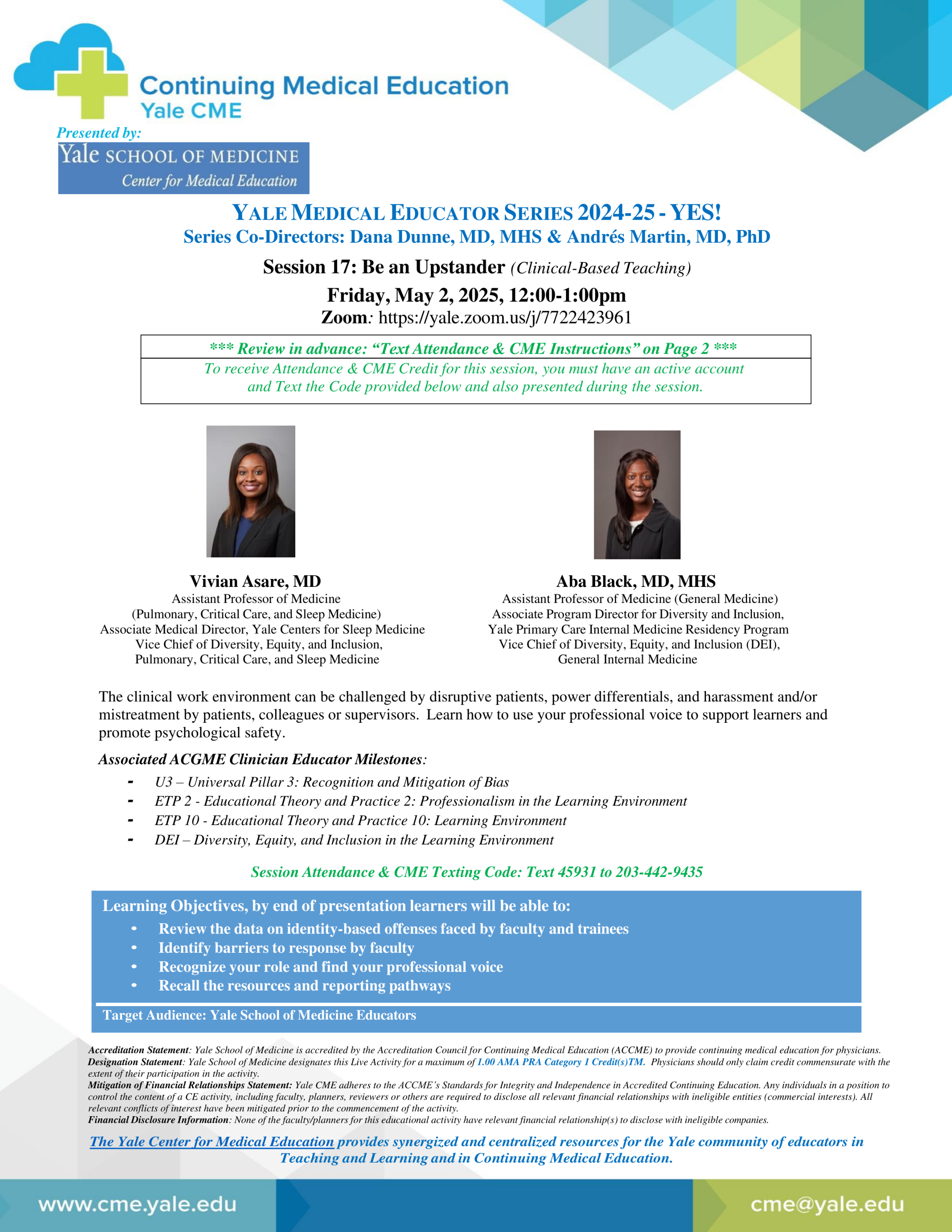 The clinical work environment can be challenged by disruptive patients, power differentials, and harrassment and/or mistreatment by colleagues or supervisors. Learn how to use your professional voice to support learners and promote psychological safety.