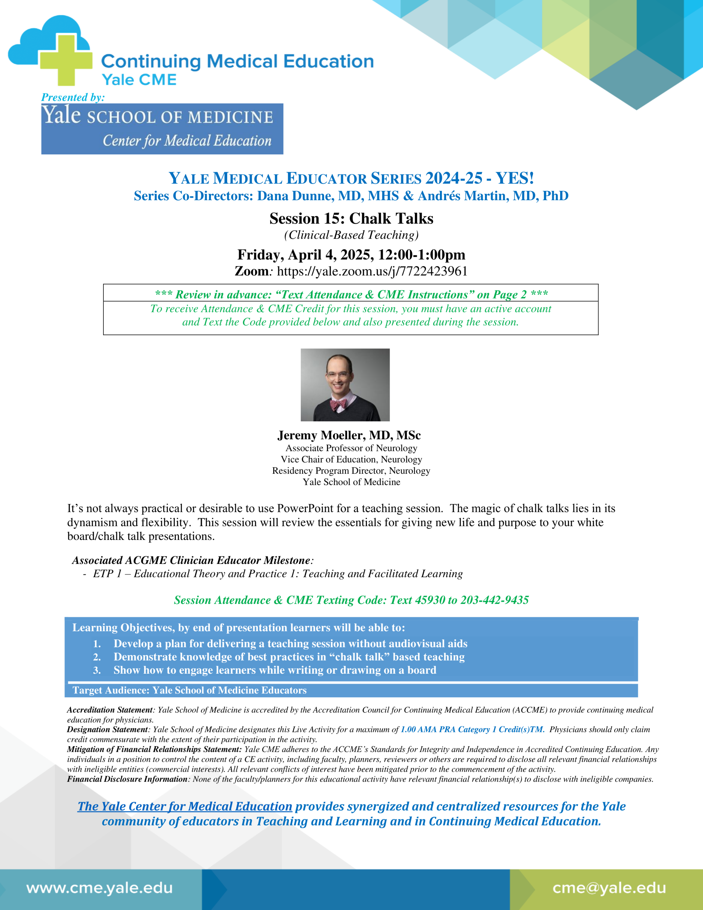 It’s not always practical or desirable to use PowerPoint for a teaching session. The magic of chalk talks lies in its dynamism and flexibility. This session will review the essentials for giving new life and purpose to your white board/chalk talk presentations.