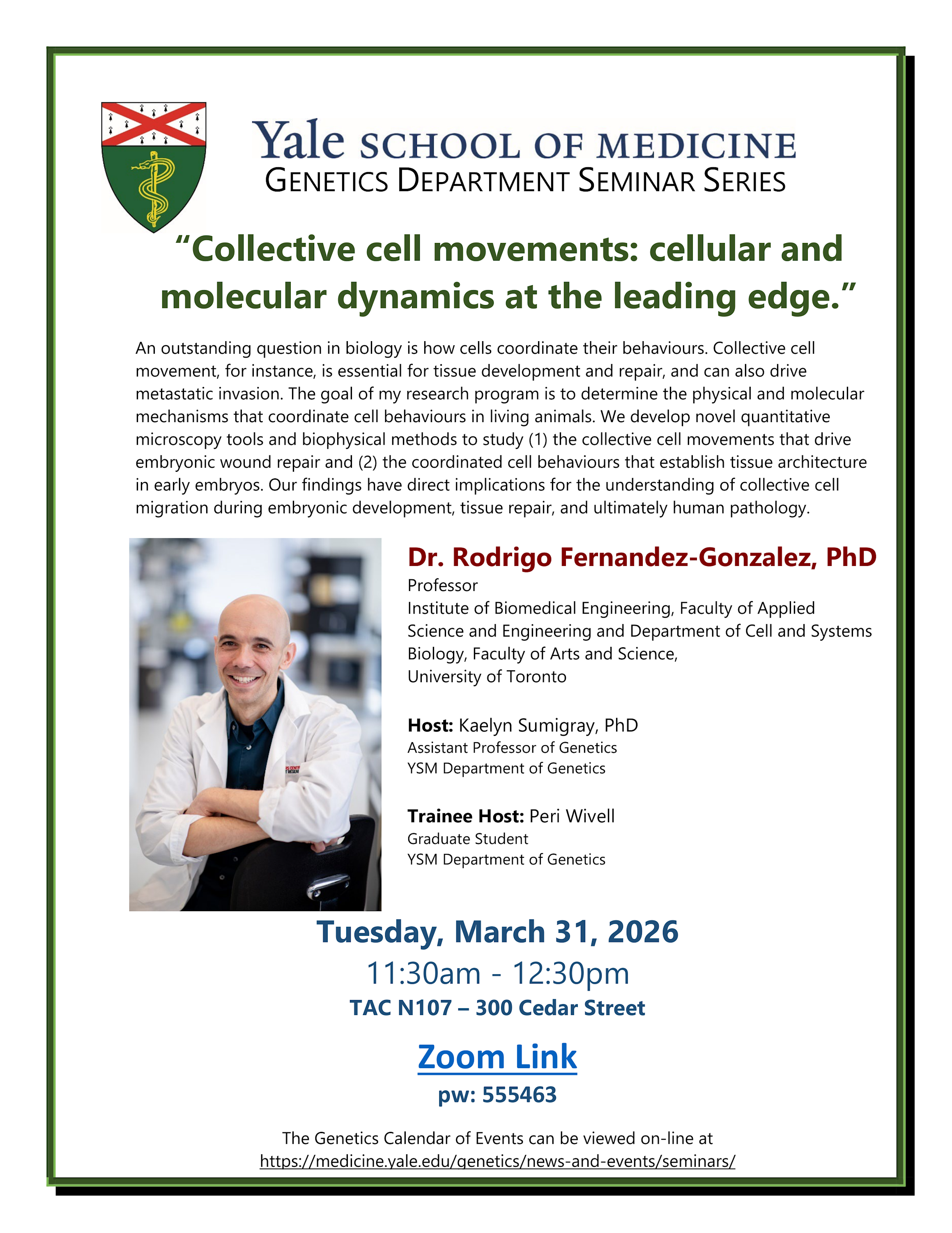 Genetics Department Seminar Series: “Collective cell movements: cellular and molecular dynamics at the leading edge.”