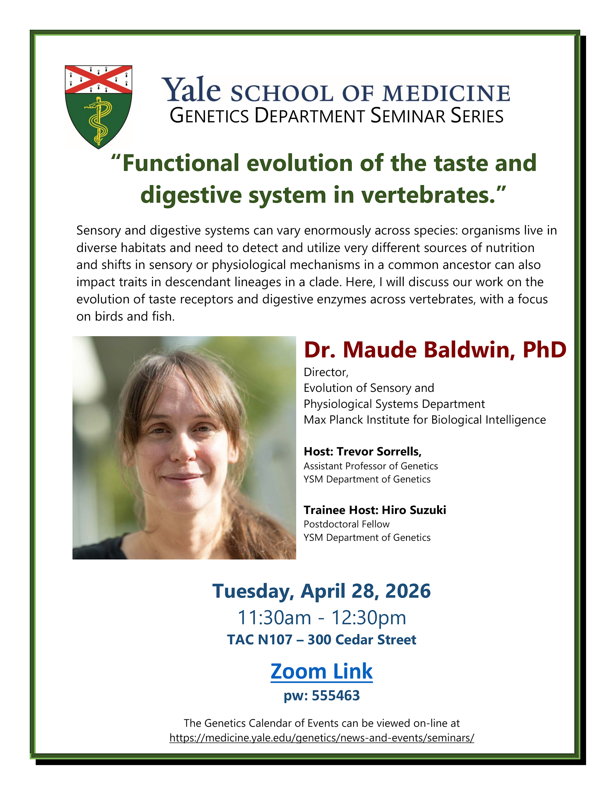 Genetics Department Seminar Series:" Functional evolution of the taste and digestive system in vertebrates."