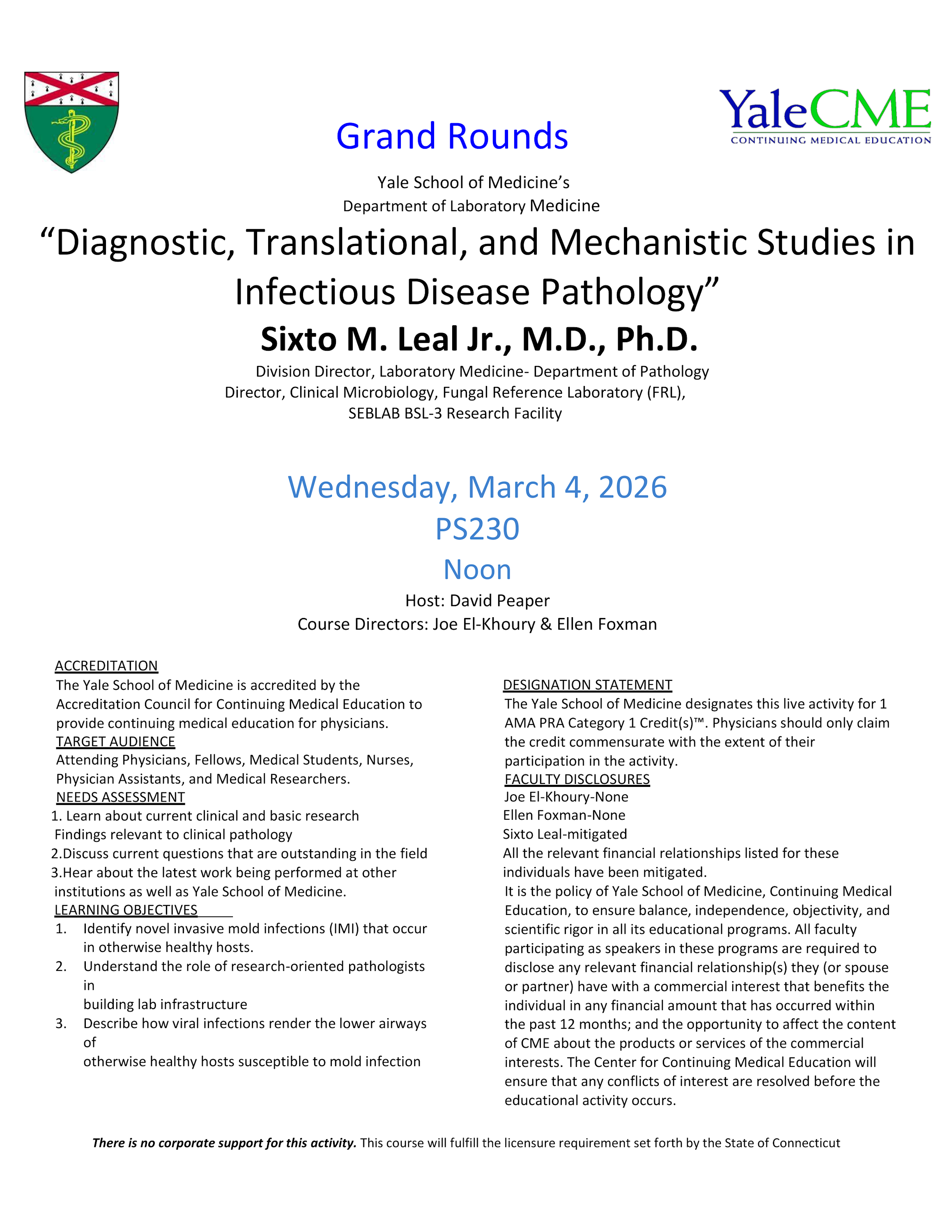 Sixto M. Leal Jr., MD, PhDDivision Director, Laboratory Medicine- Department of Pathology Director, Clinical Microbiology, Fungal Reference Laboratory (FRL), SEBLAB BSL-3 Research Facility