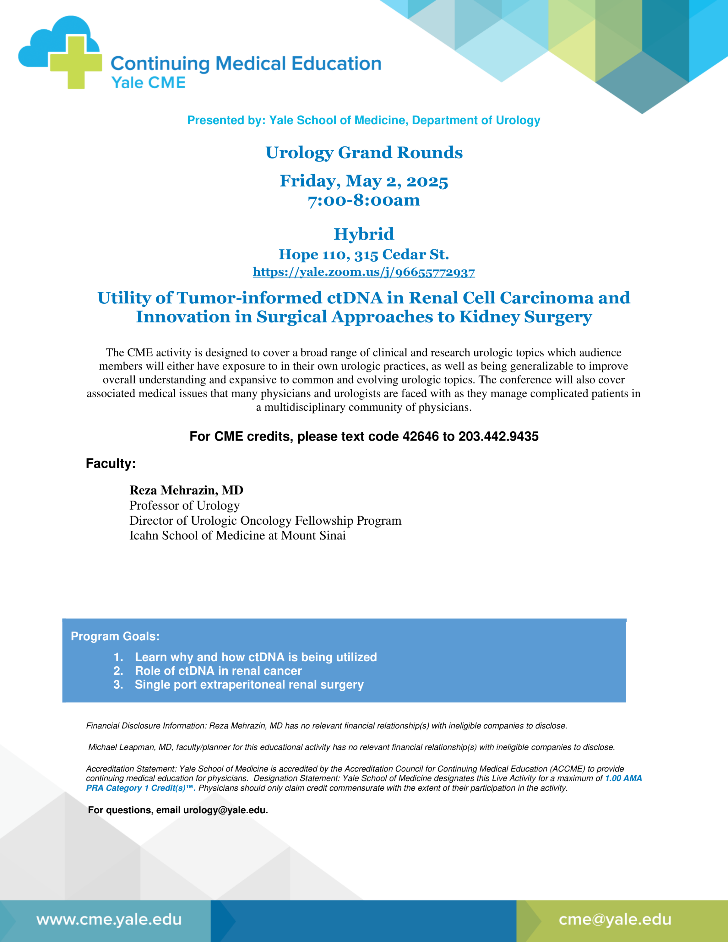 Urology Grand Rounds: "Utility of Tumor-informed ctDNA in Renal Cell Carcinoma and Innovation in Surgical Approaches to Kidney Surgery"