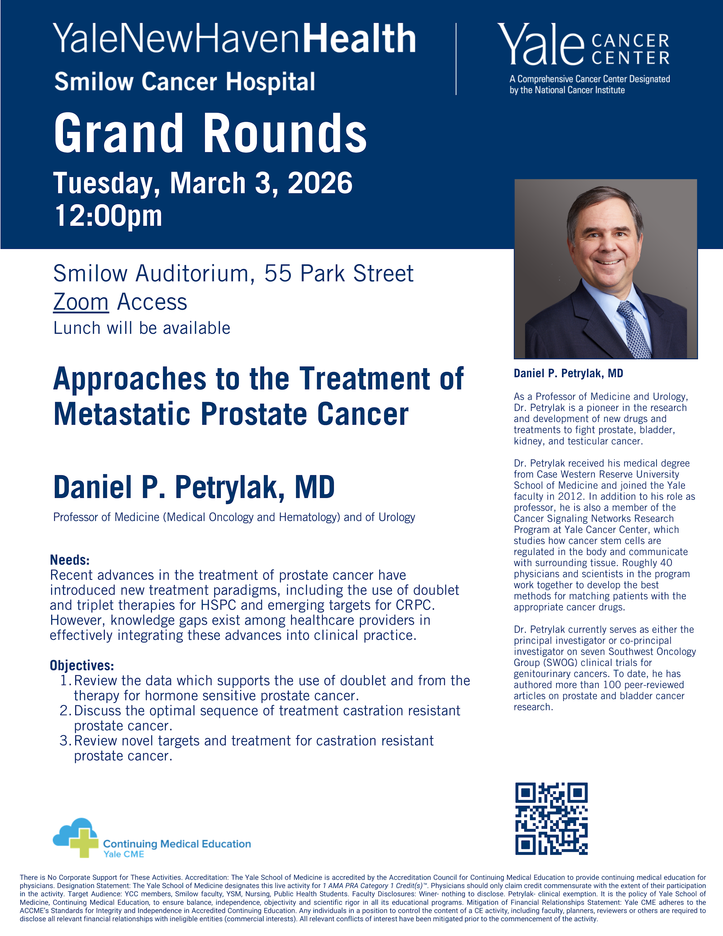 Please join us for the 2025-2026 Yale Cancer Center Grand Rounds, hosted Tuesdays at 12pm in Smilow Auditorium, 55 Park Street, 2nd Floor - unless otherwise noted.