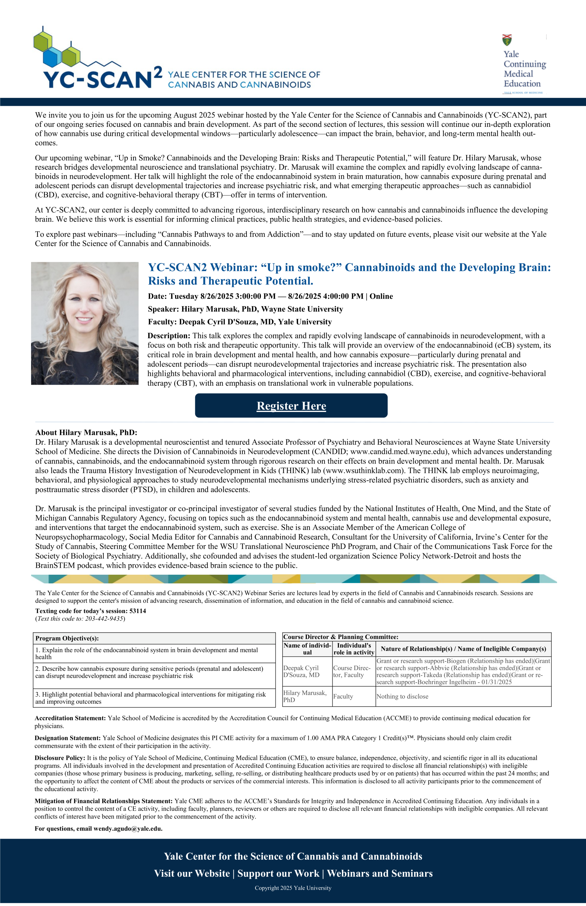 This talk explores the complex and rapidly evolving landscape of cannabinoids in neurodevelopment, with a focus on both risk and therapeutic opportunity. This talk will provide an overview of the endocannabinoid (eCB) system, its critical role in brain development and mental health, and how cannabis exposure—particularly during prenatal and adolescent periods—can disrupt neurodevelopmental trajectories and increase psychiatric risk. The presentation also highlights behavioral and pharmacological interventions, including cannabidiol (CBD), exercise, and cognitive-behavioral therapy (CBT), with an emphasis on translational work in vulnerable populations.