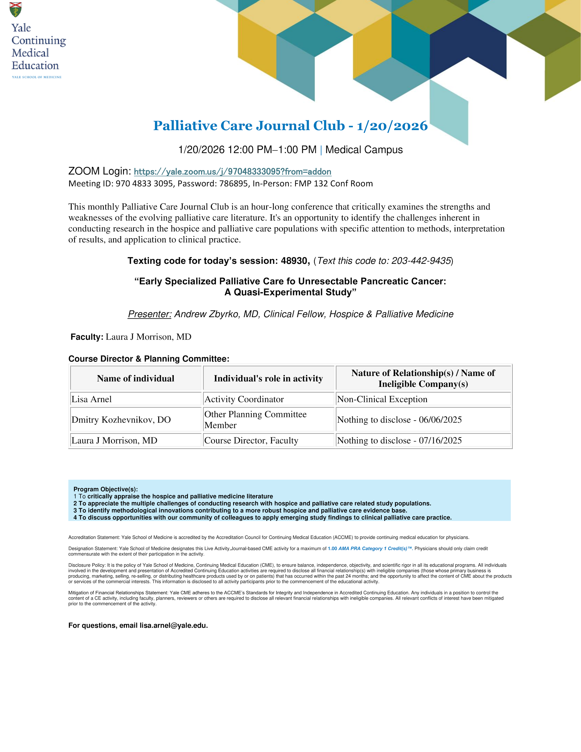 Also In Person: Yale Med Campus, Bldg. FMP, 1st Floor, Conf Room FMP 132