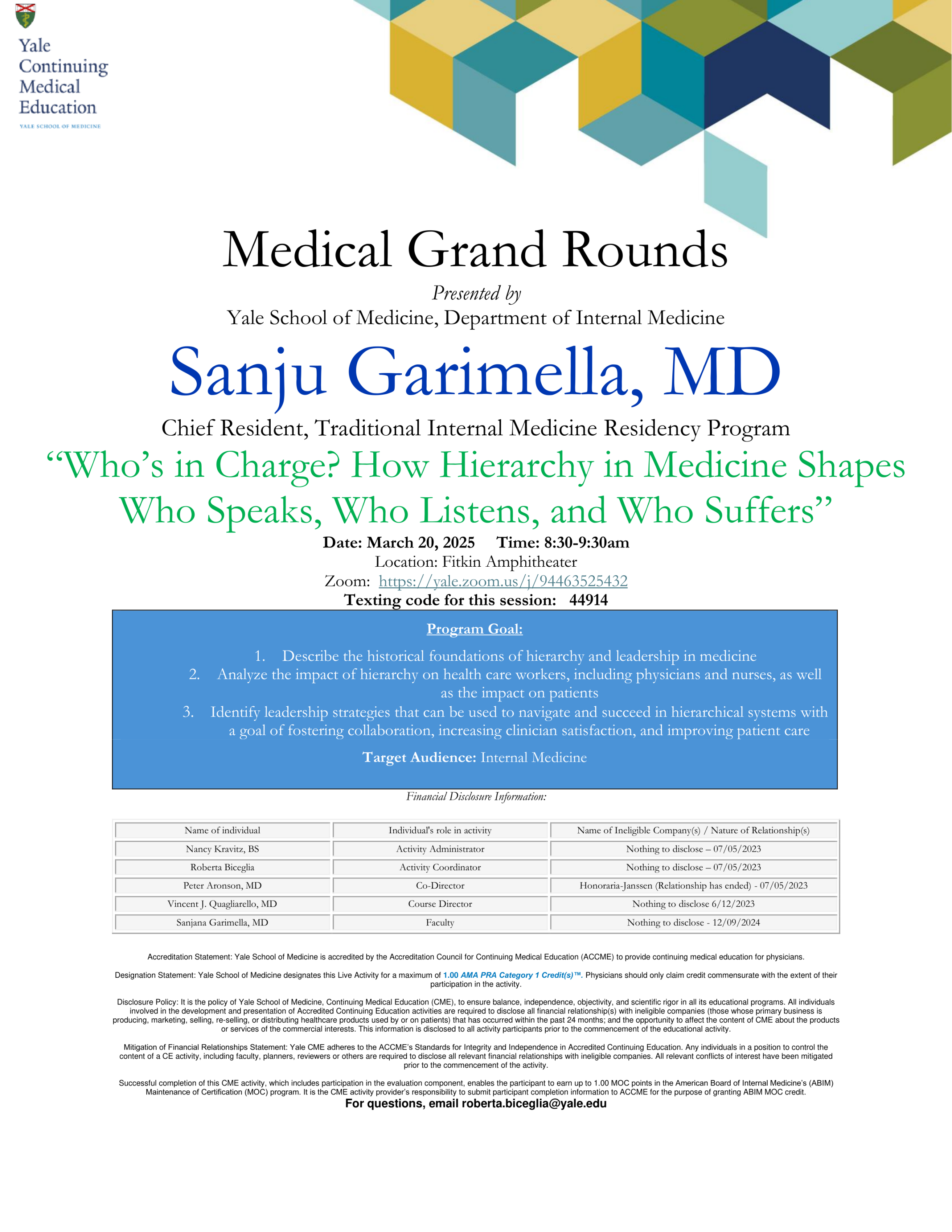 Medical Grand Rounds: “Who’s in Charge? How Hierarchy in Medicine Shapes Who Speaks, Who Listens, and Who Suffers”