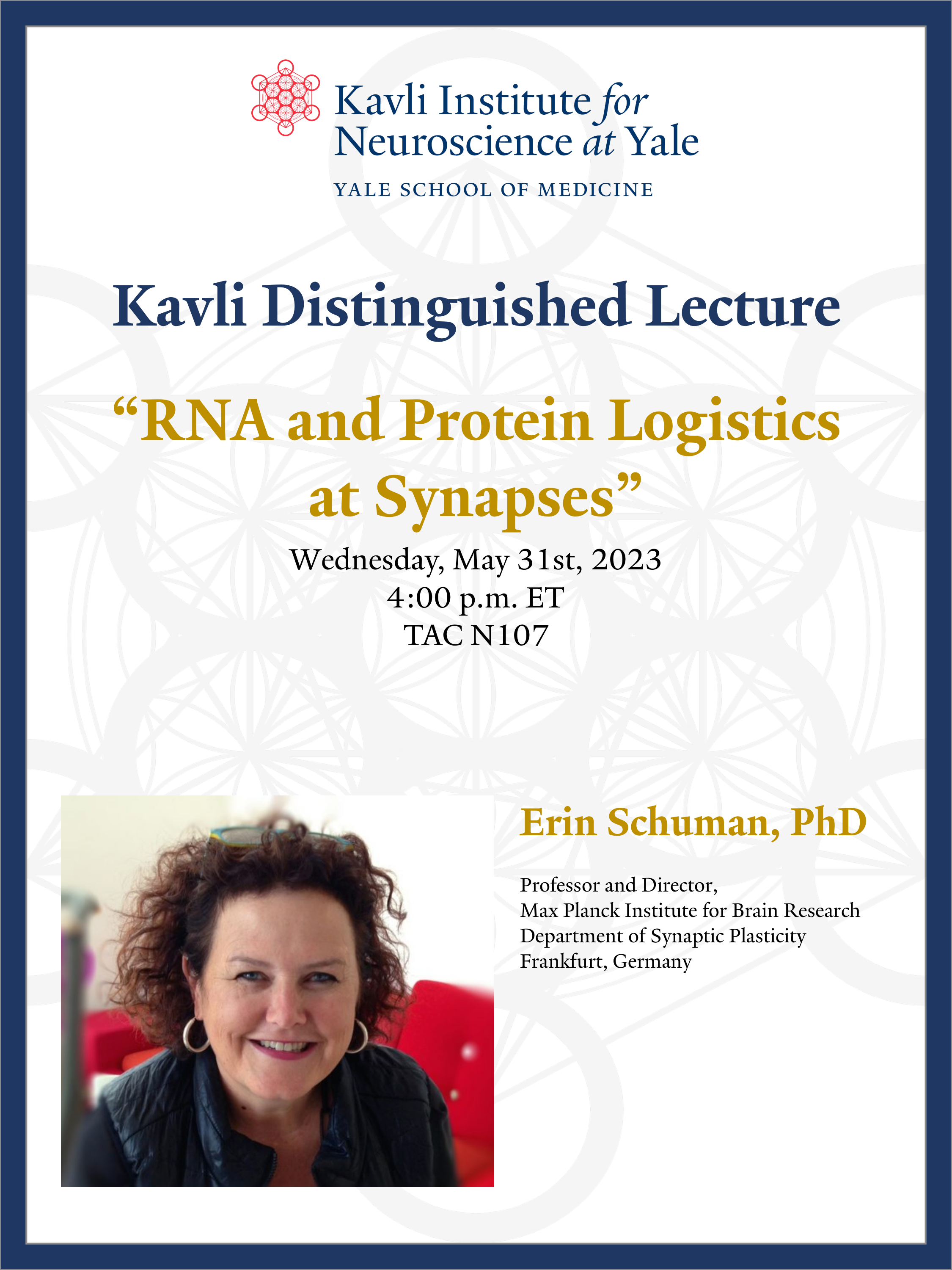 Save the date! Erin Schuman, PhD, will give the 2023 Kavli Distinguished Lecture.