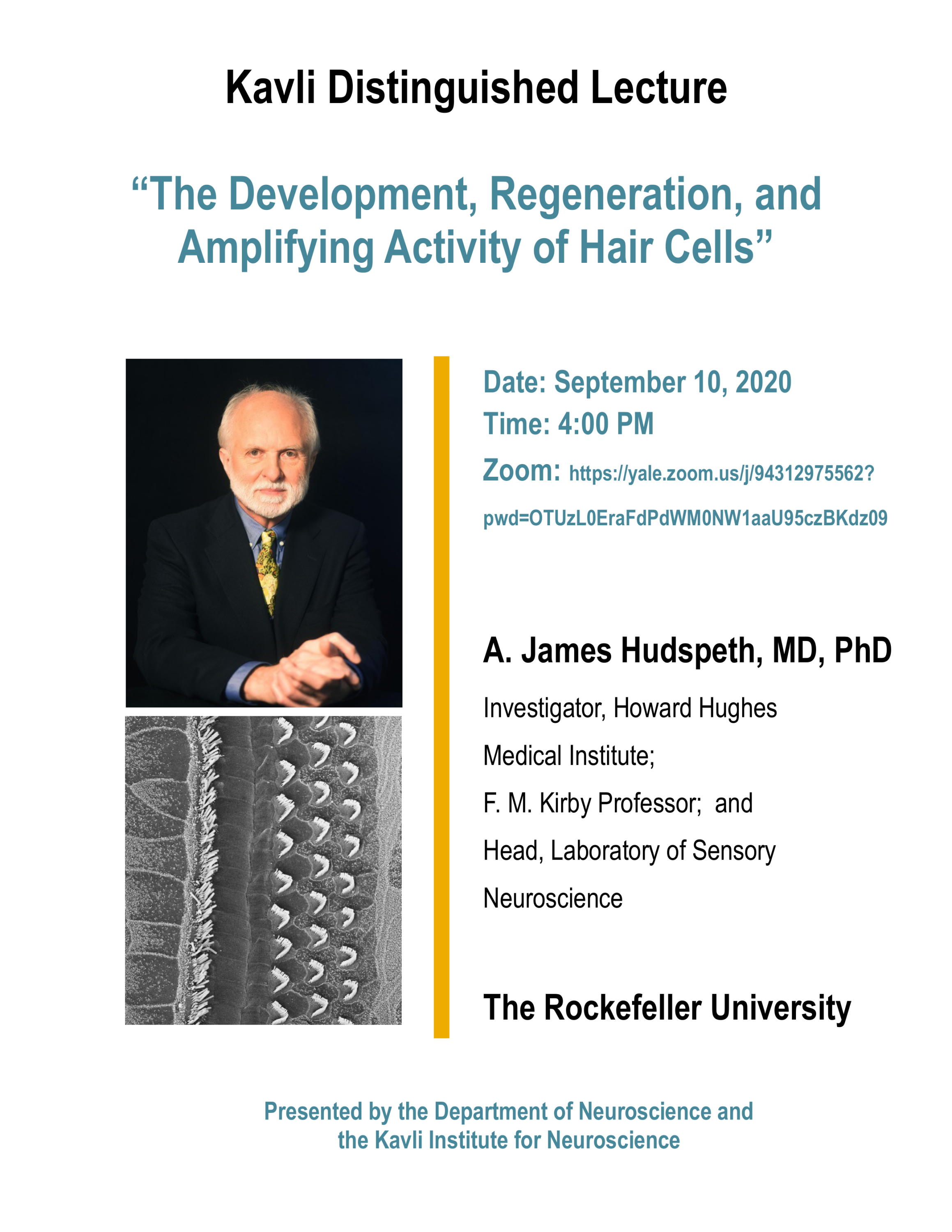 Kavli Distinguished Lecture: "The Development, Regeneration, and Amplifying Activity of Hair Cells"