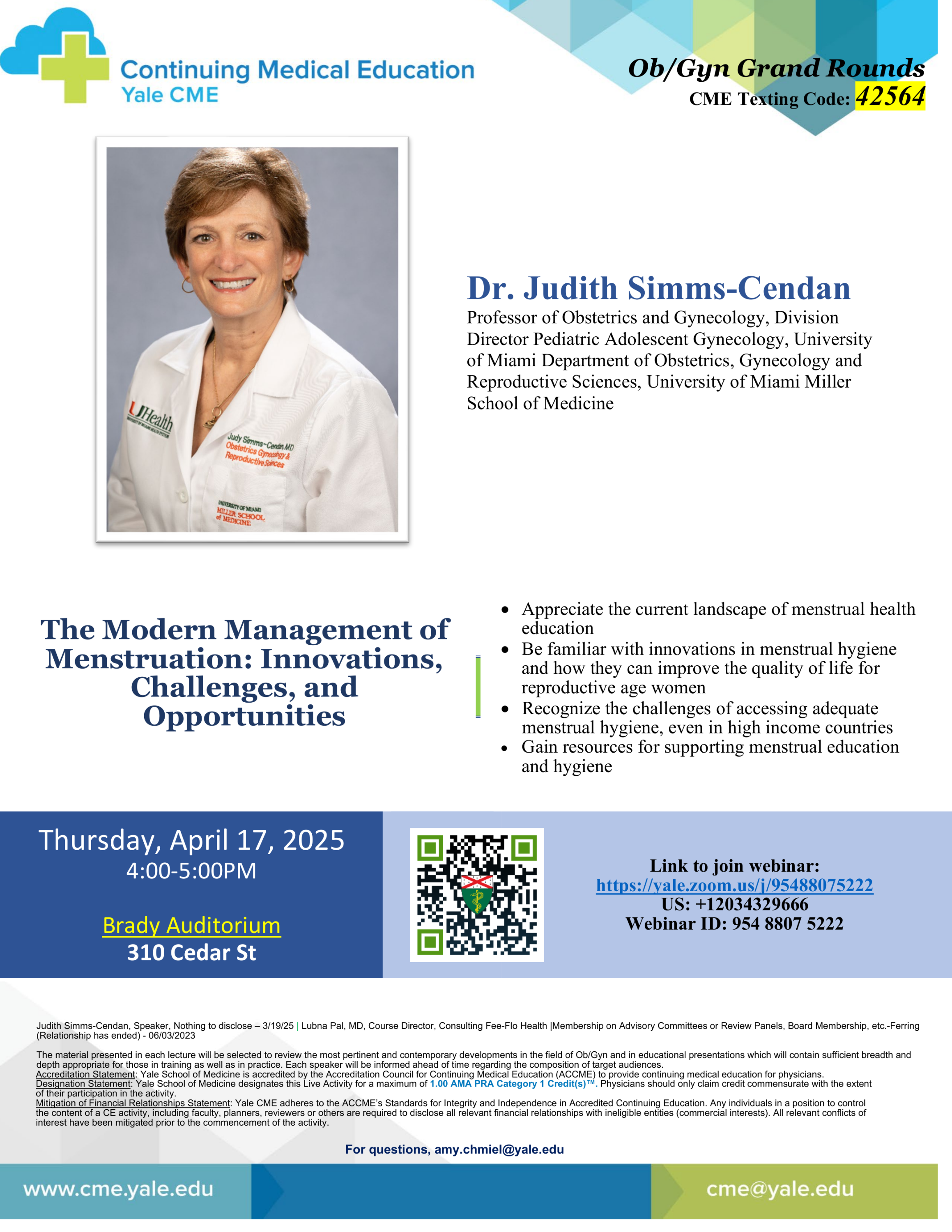 OBGYN Grand Rounds by Judith Simms-Cendan, MD: The Modern Management of Menstruation: Innovations, Challenges, and Opportunities