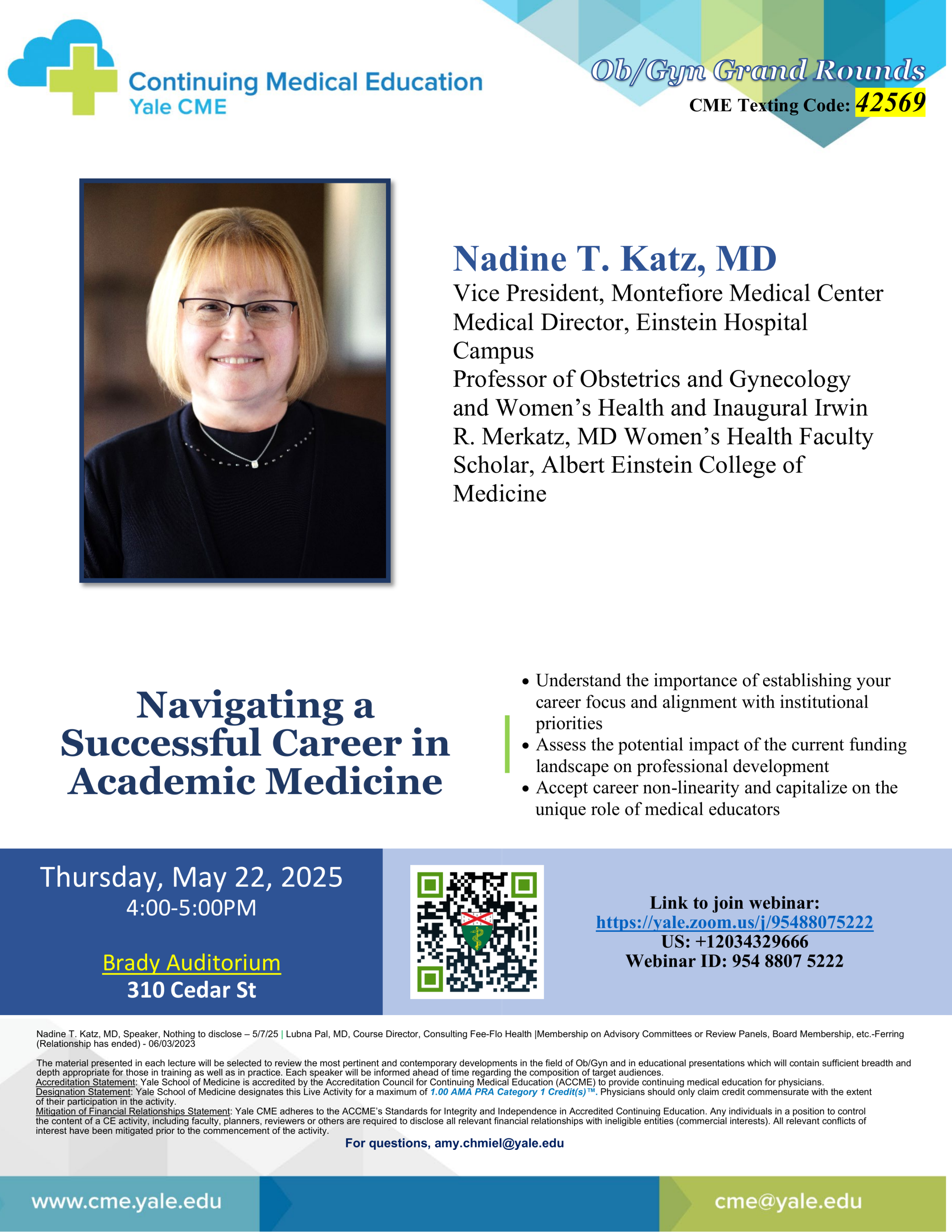 OBGYN Grand Rounds by Nadine T. Katz, MD: Navigating a Successful Career in Academic Medicine