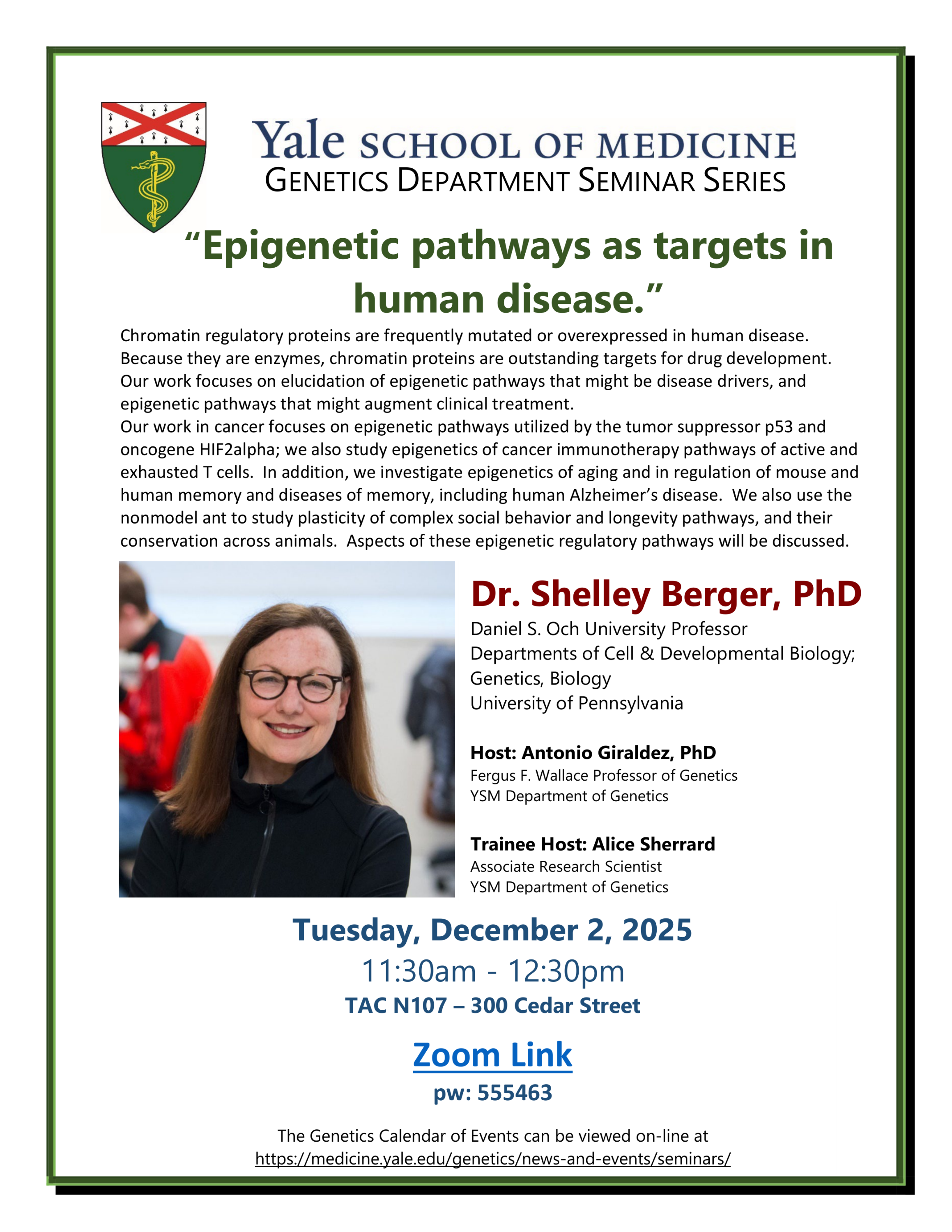 Cancelled: Genetics Department Seminar Series: "Epigenetic Pathways as Targets in Human Disease."