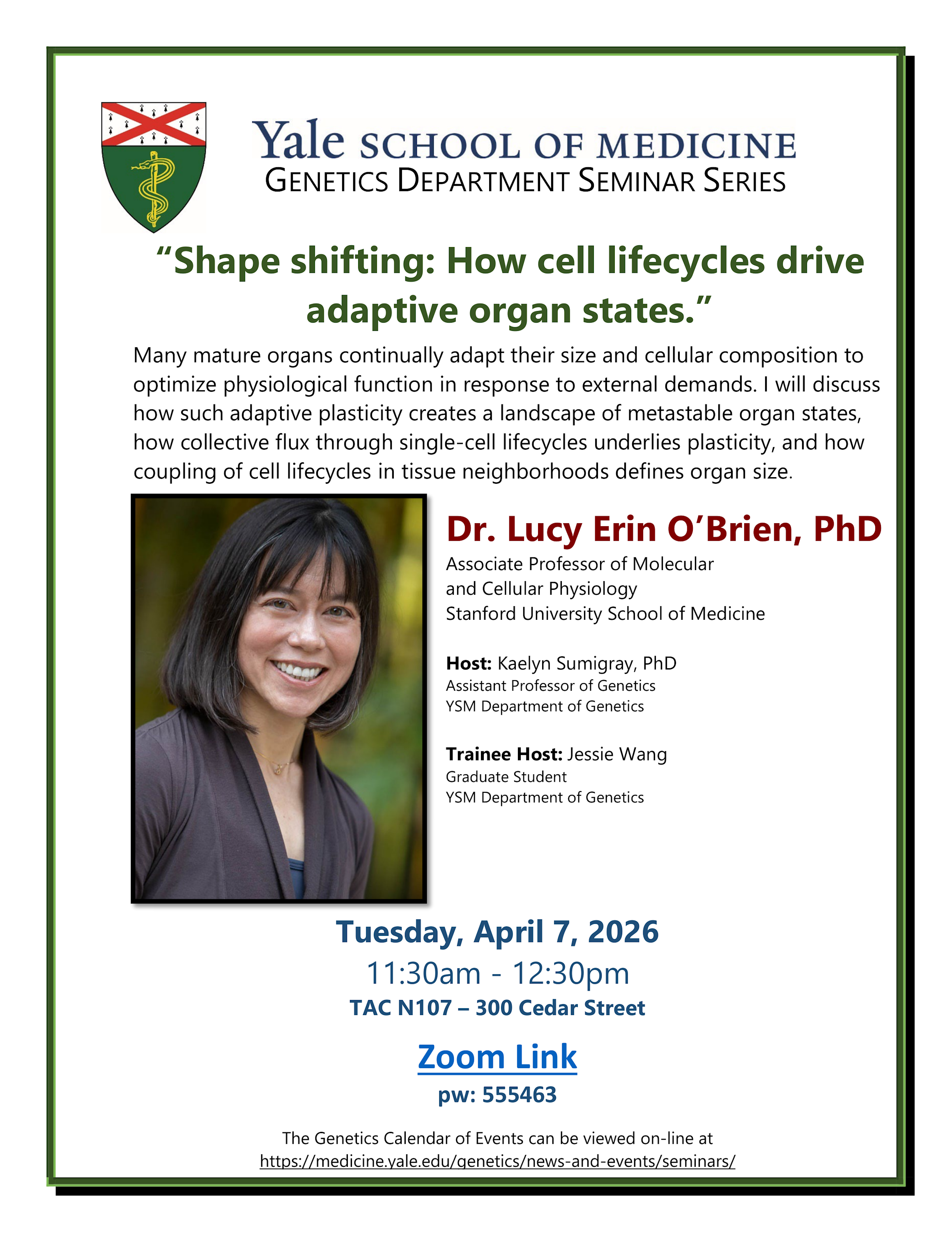 Genetics Department Seminar Series: "Shape shifting: How cell lifecycles drive adaptive organ states."
