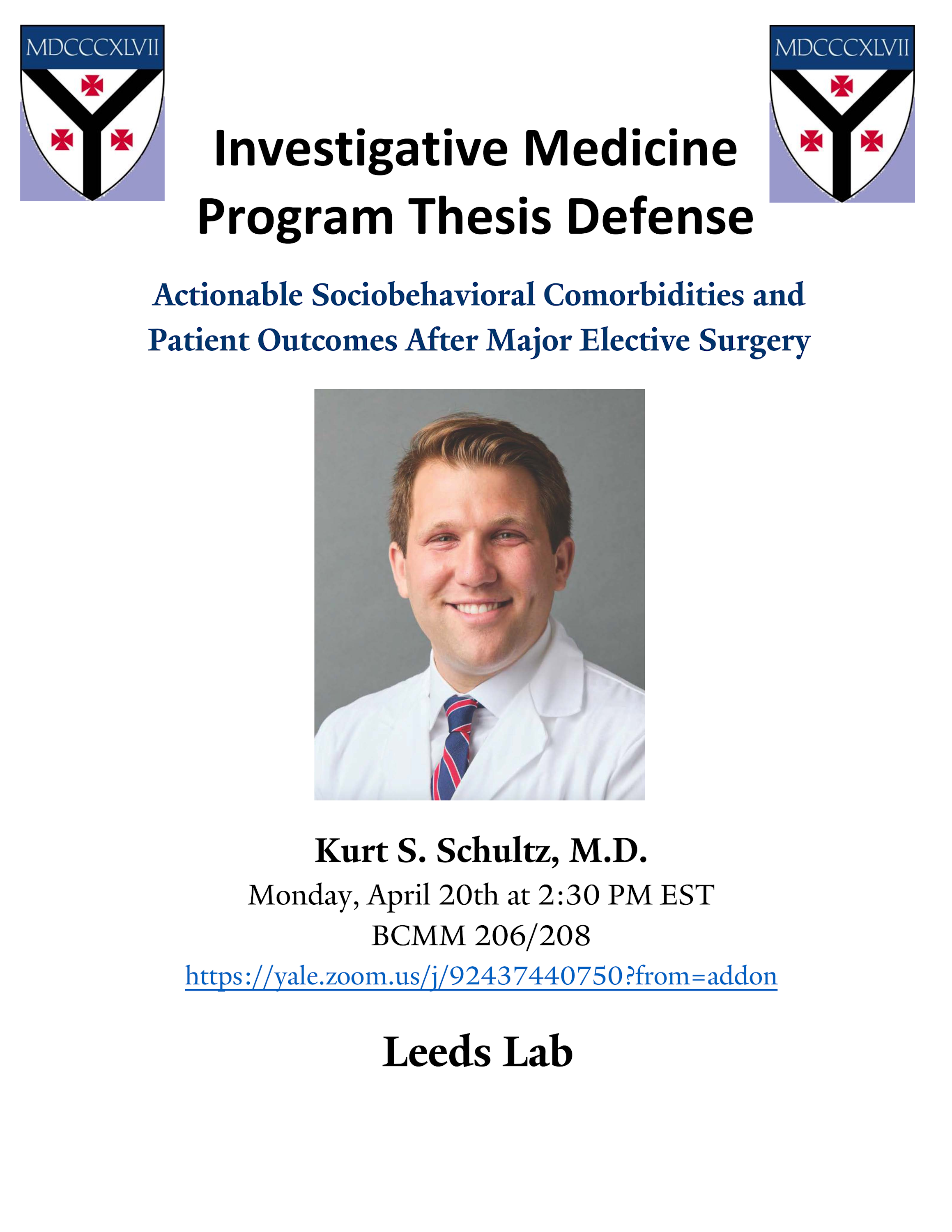 Please join the Investigative Medicine Program as one of our students, Kurt Schultz, defends his thesis. For those who would like to attend but cannot make it, there will be a zoom option.